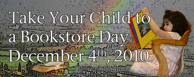 Day 28: Take Your Child To a Bookstore Day Posted on November 29, 2010November 29, 2010 by Kathy Waller in Uncategorized December 4, 2010, marks the first annual Take Your Child to a Bookstore Day. Just do it. Please.