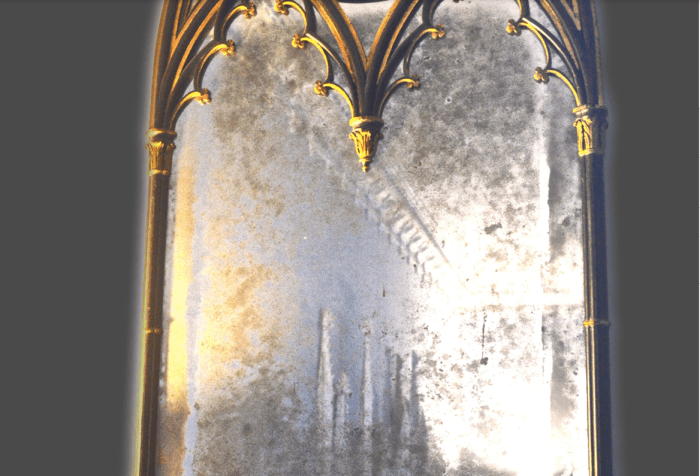 By blind, I mean it carried no mirror, though once it must have been made to stand on the dressing table of some impossibly rich and beautiful woman. It was carved in mahogany and had once been lavishly gilded by master craftsmen, but its crevices collected dust now, its unsettling features dulled by time and inattention.