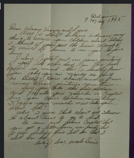 A letter my dad wrote to my cousins Wray, Mary Veazey, and Lynn Worden in Dallas while he was stationed in Europe during World War II. He’d been away from home since November 1942.