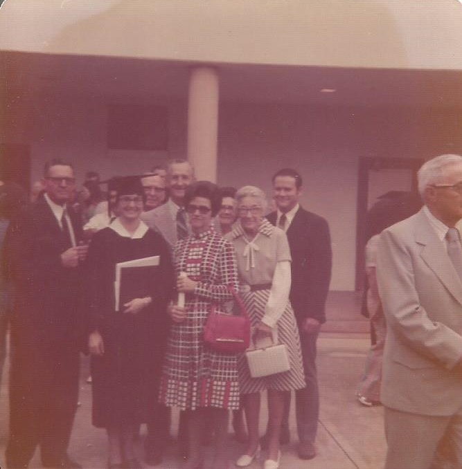 SWTSU graduation, August 1973. Bill, Kathy, Joe (“Bub”) Dauchy, Joe Waller,