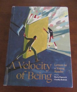 I posted Tuesday at Ink-Stained Wretches-a review (sort of) of A Velocity of Being: Letters to Young Readers, a wonderful collection of letters from authors, scientists, musicians, venture capitalists, a 98-year-old survivor of the Holocaust, astrophysicists, and many others, writing about what books and reading have meant to them.