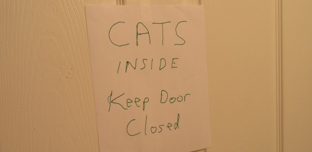 Oh dear. There is a new sound coming from the bathroom. It’s either Ernest trying to demolish the litter box or Ernest trying to tear through the wall. We’ll find out later. Maybe we should have put them in the larger bathroom.