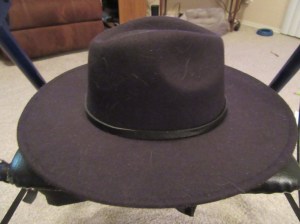 When I got out, I realized it wasn’t the kind of hat I wanted–the top is fedora but the brim is wide and circular, not the kind that turns down in the front and up in the back. I wanted the kind my father and Humphrey Bogart wore.