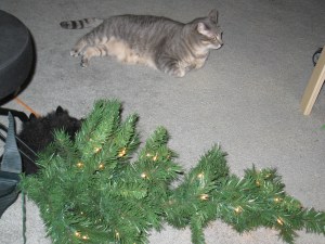 The next morning Kathy found the tree lying on its side and the cats out of sight.