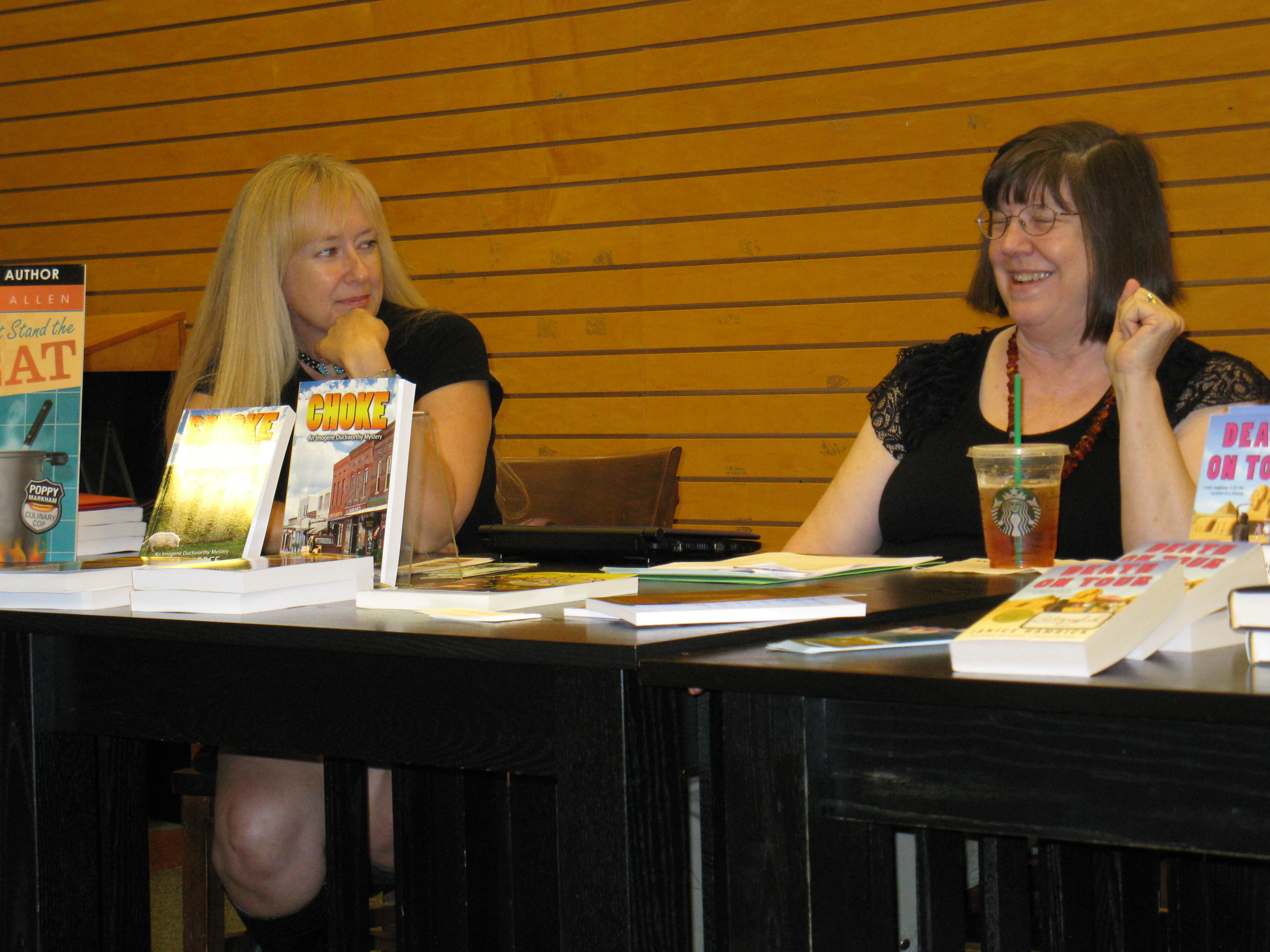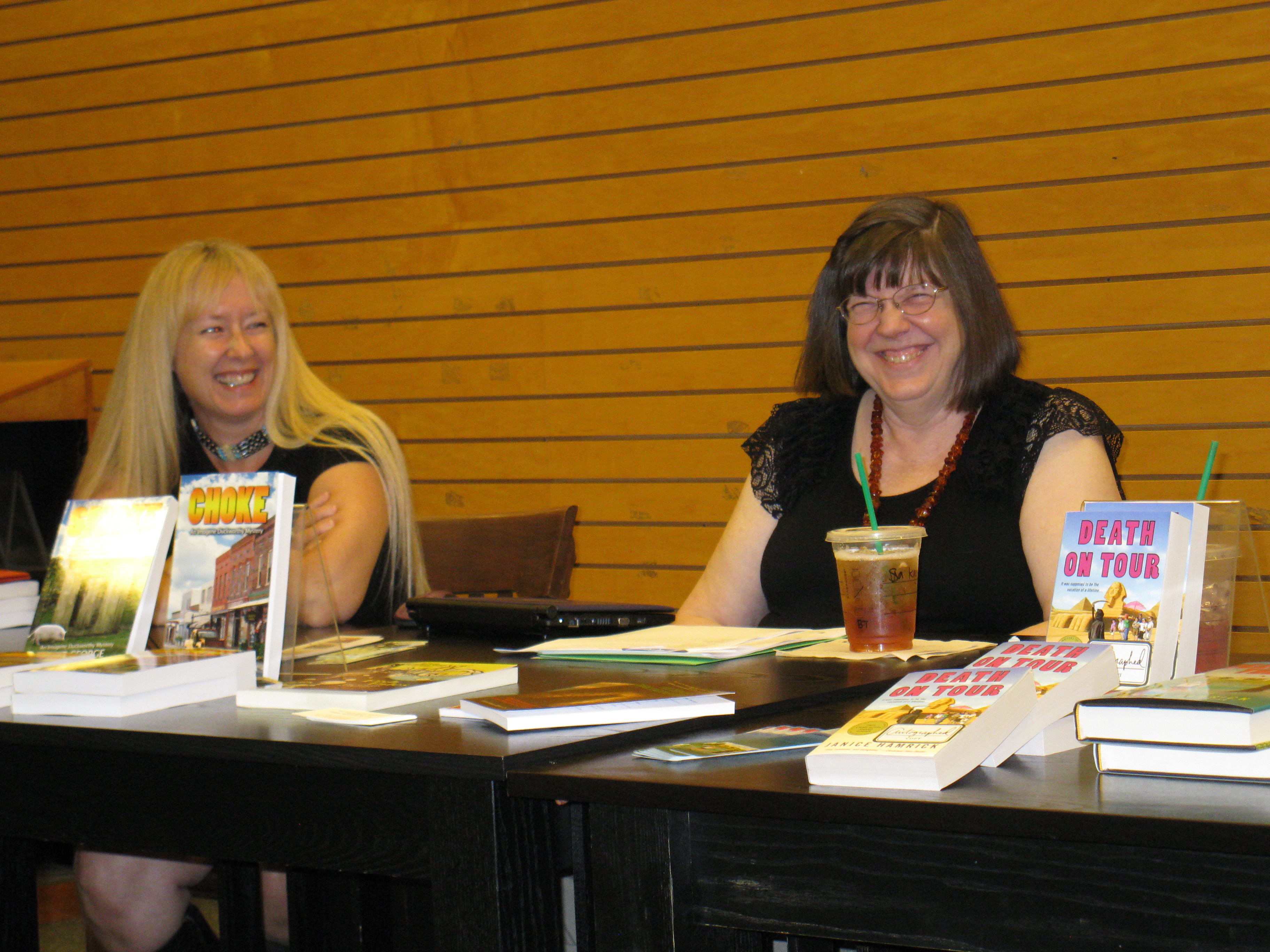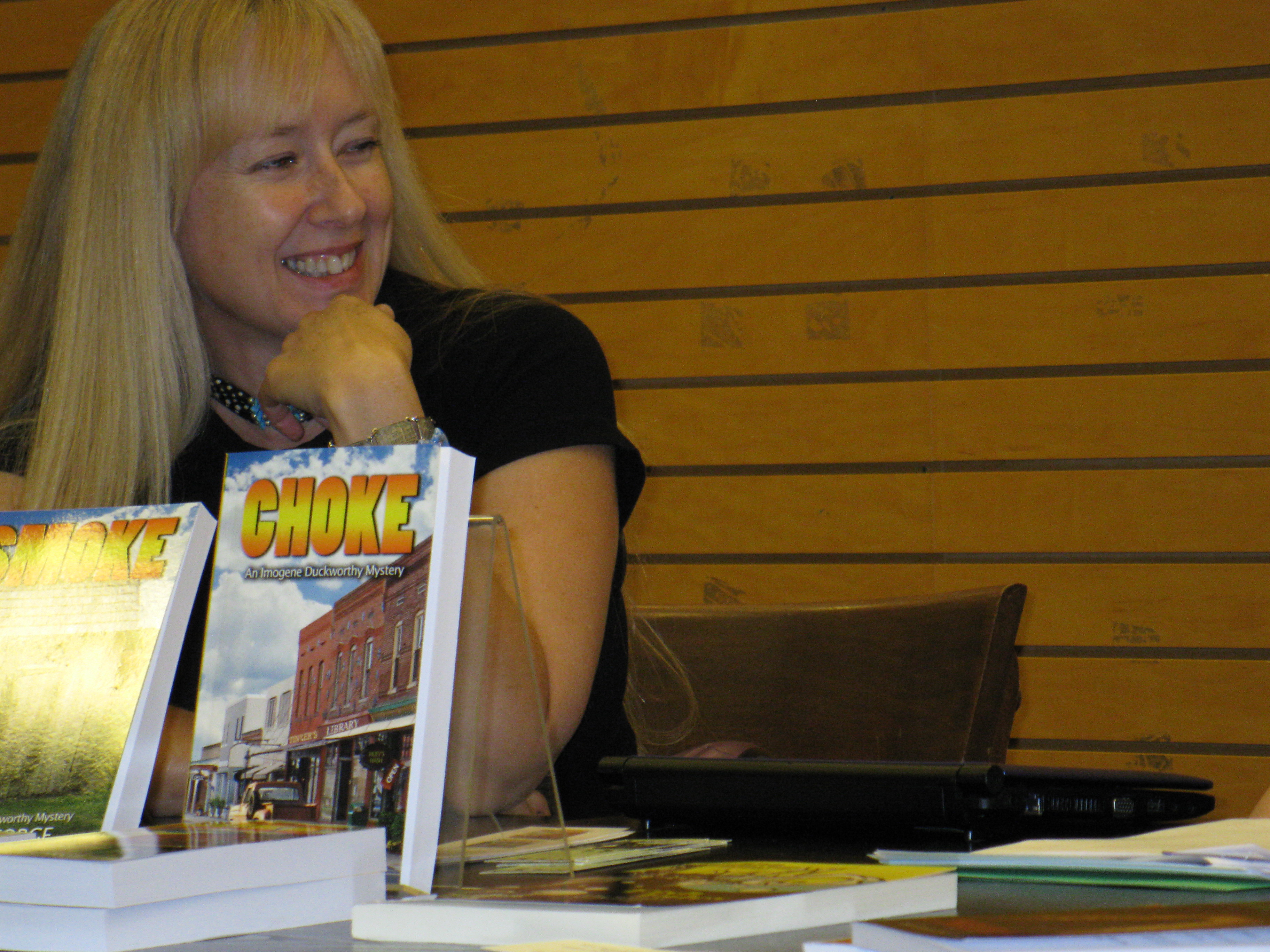 I also said Nany G. West is a friend. We’ve been on a writers’ retreat together (where I don’t think anyone wrote a word, but we went to a lovely tea room). We’ve been to Malice Domestic, where we met at the Guppies Breakfast. She allowed me to take a snapshot of her. She didn’t pay me to say nice things about her book or in any way influence my review.