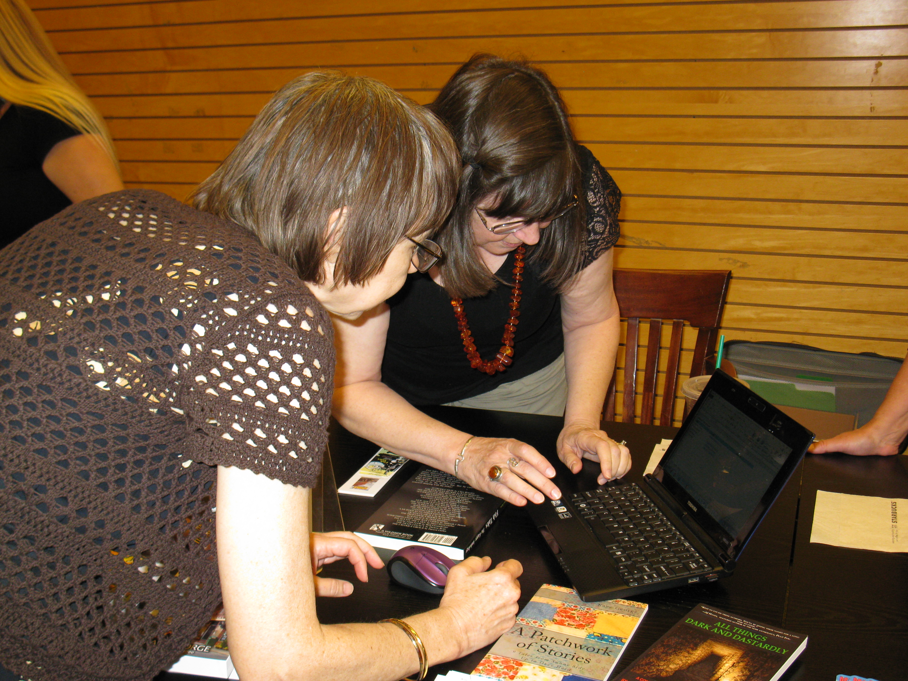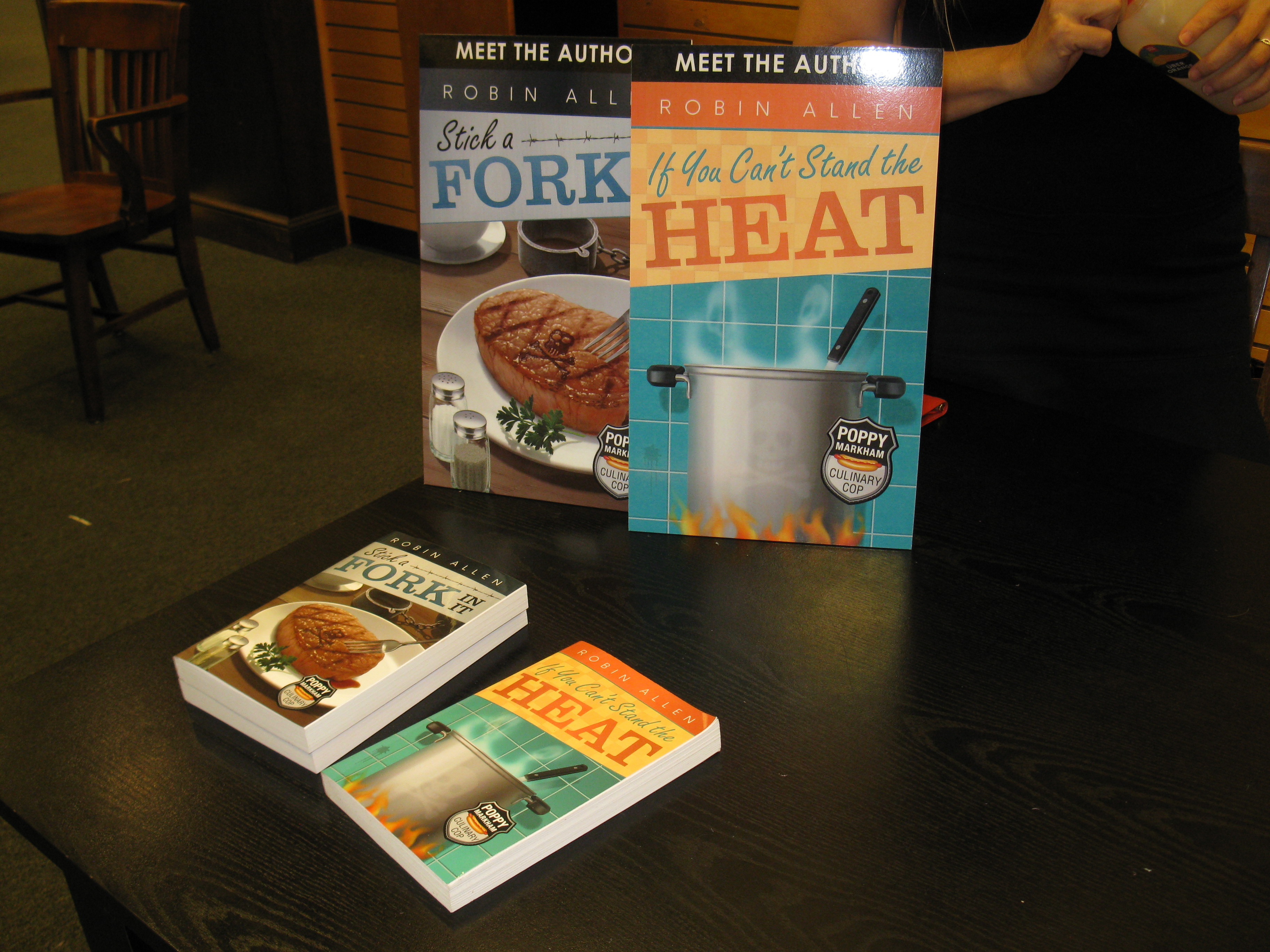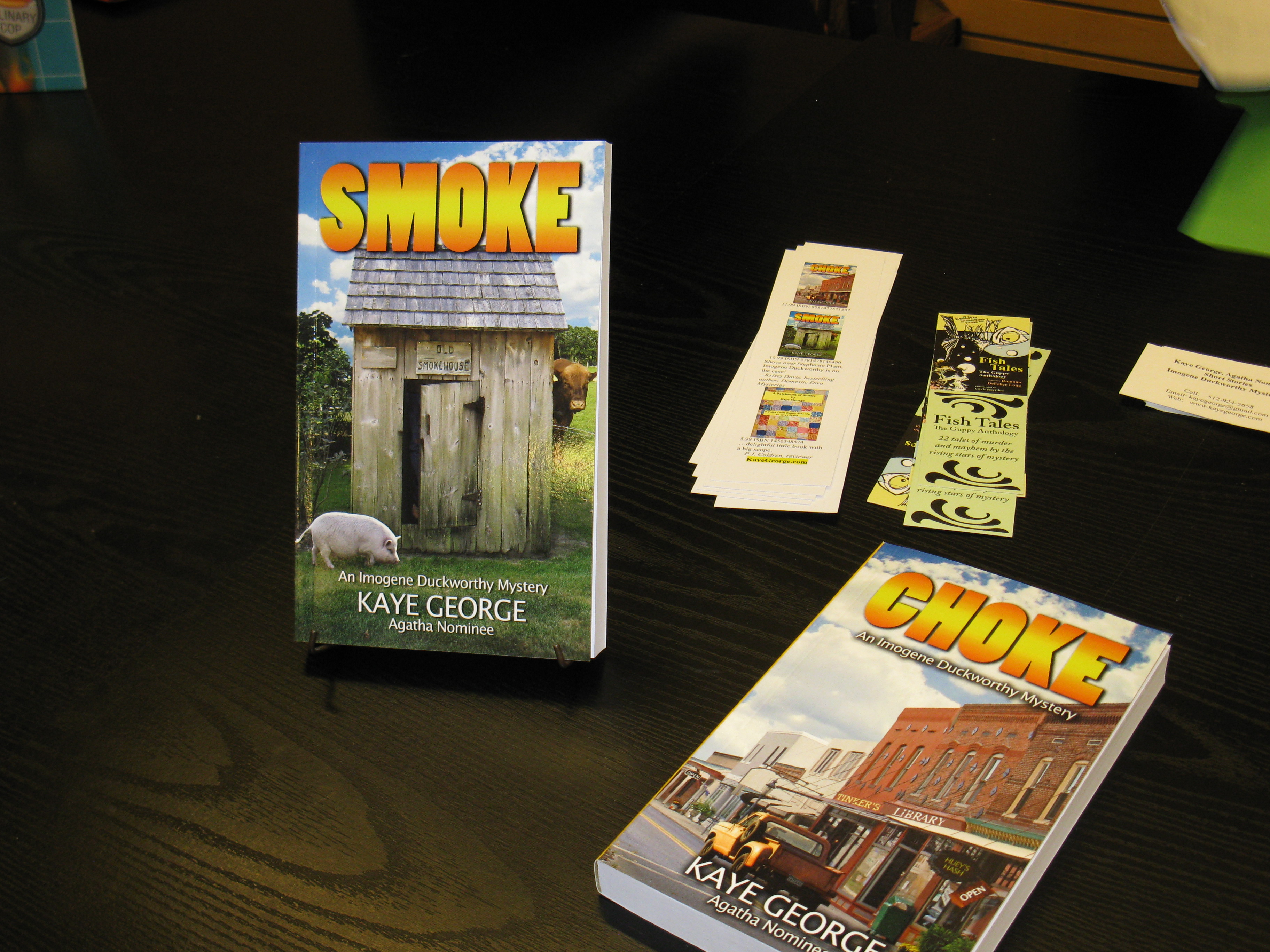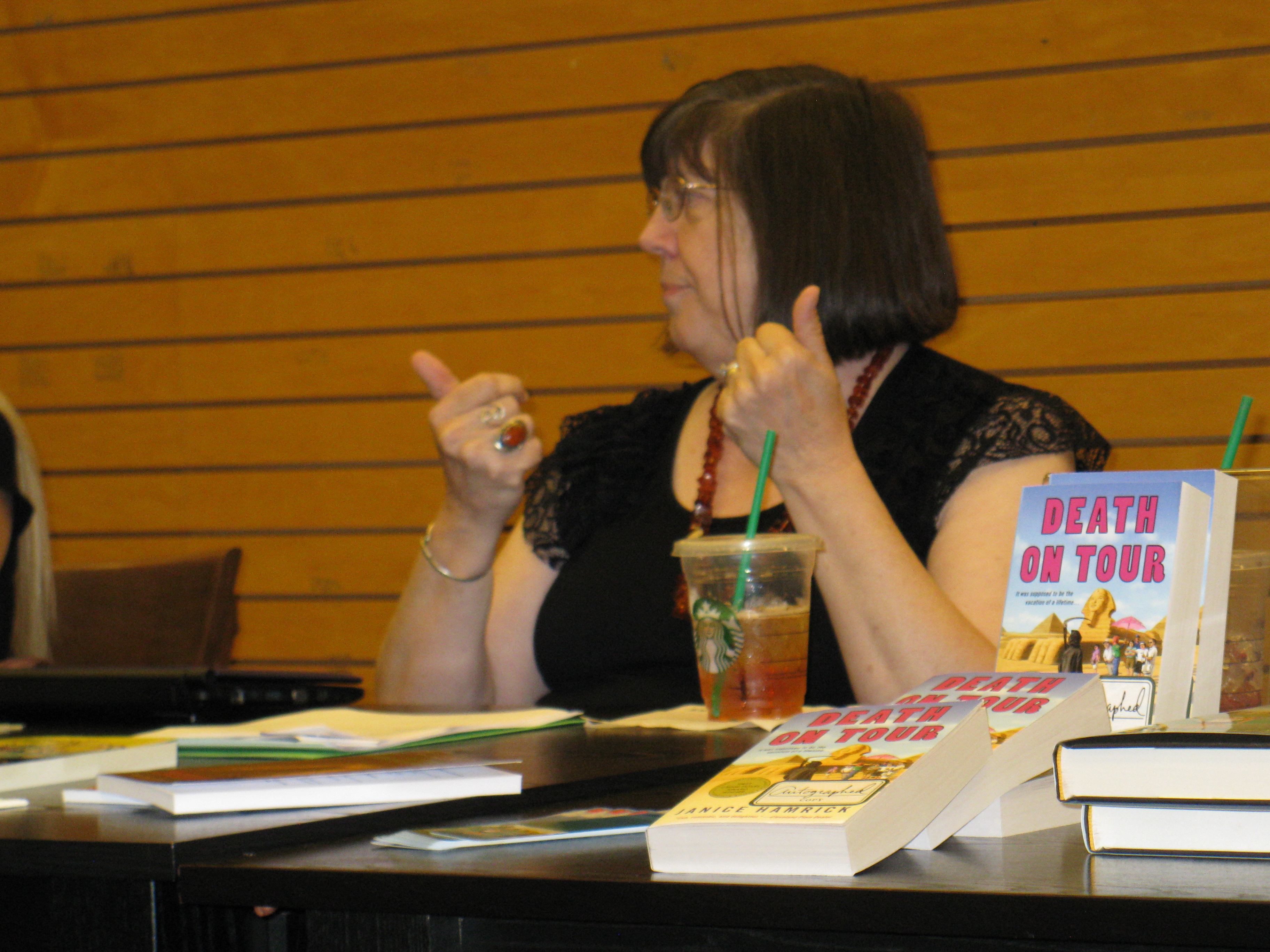 I also said Nany G. West is a friend. We’ve been on a writers’ retreat together (where I don’t think anyone wrote a word, but we went to a lovely tea room). We’ve been to Malice Domestic, where we met at the Guppies Breakfast. She allowed me to take a snapshot of her. She didn’t pay me to say nice things about her book or in any way influence my review.