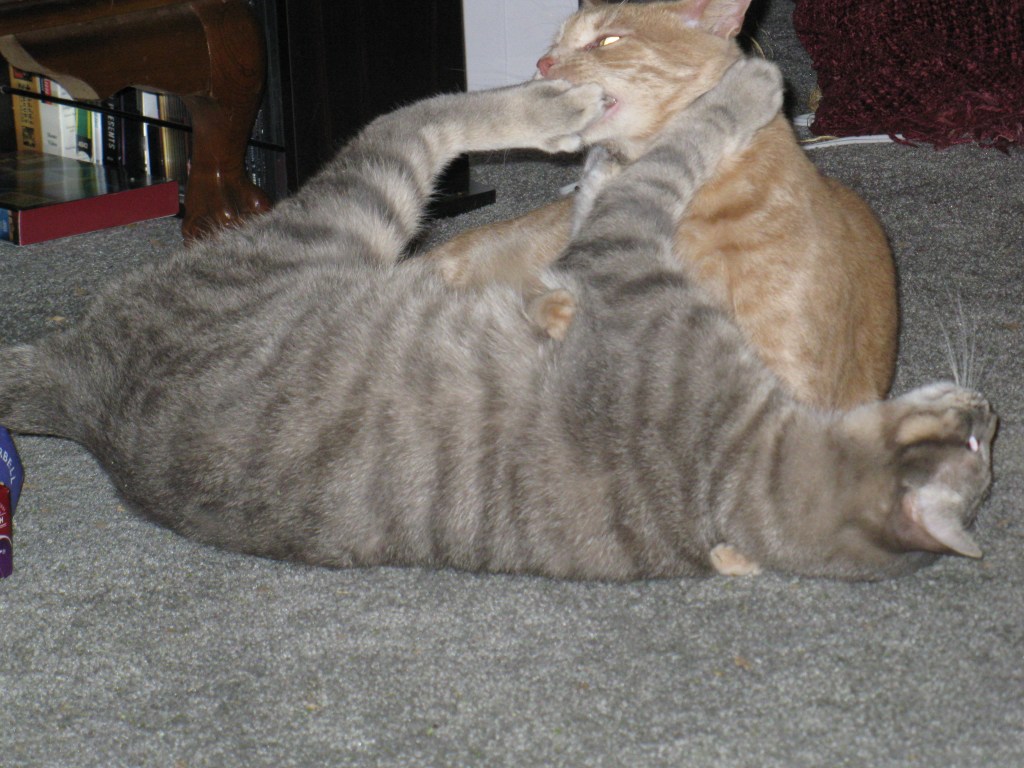I admit William is graceful. That surprises me. As a kitten he was so tubby he couldn’t leap and climb as (other) kittens do. When he tried to pull himself onto a higher shelf of the kitty pagoda, his little body would just dangle there, bottom-heavy, until he let go and fell or was discovered and rescued. Instead of jumping onto the bed, he walked up the stairs we’d put there for Chloe.