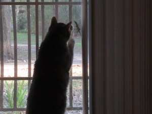 David had already taken preventive measures against marauding humans. Not trusting the sliding door’s lock, he’d braced one of my never-used canes in the track inside. When the snake’s intent became obvious, David quickly stuffed a wad of paper towels in whatever space might have remained and replaced the cane.