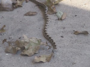 In case you don’t care for snakes, don’t worry–I won’t include pictures of them. And no one will be bitten. All my snake stories are true, but I kept my distance while they were happening.