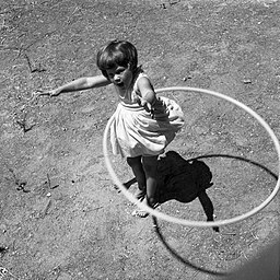 Girl twirling a hula hoop, 1958, by BeenAroundAWhile, licensed under CC BY-SA 3.0. Via Wikipedia.
